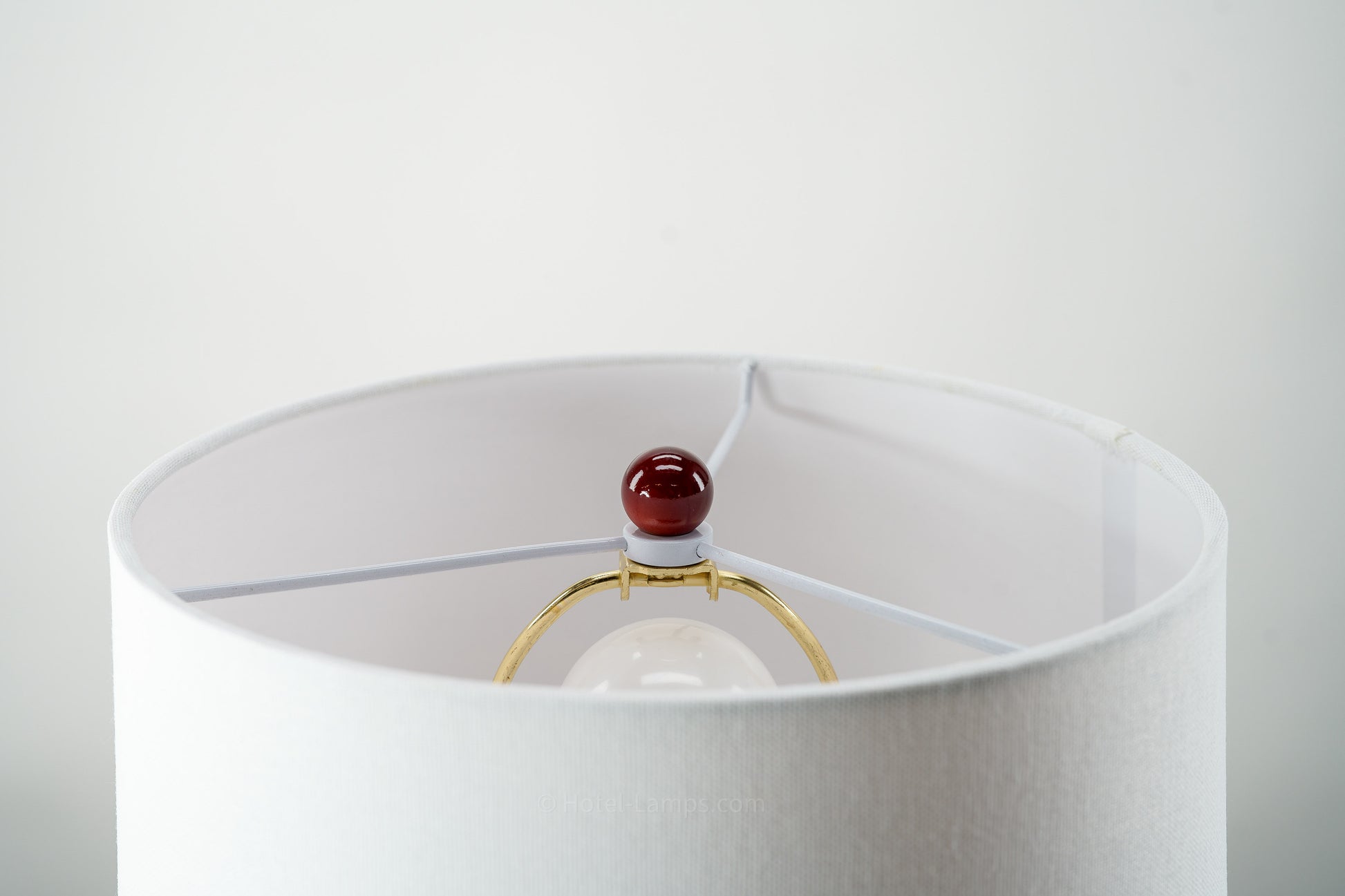 Bring a pop of color and functionality to any room with the Blue Ceramic Sphere Table Lamp with Red Accents. Hand-painted with a vibrant blue spherical body and striking red neck, this lamp is a stylish addition to modern bedrooms, living rooms, offices, or dorm spaces.