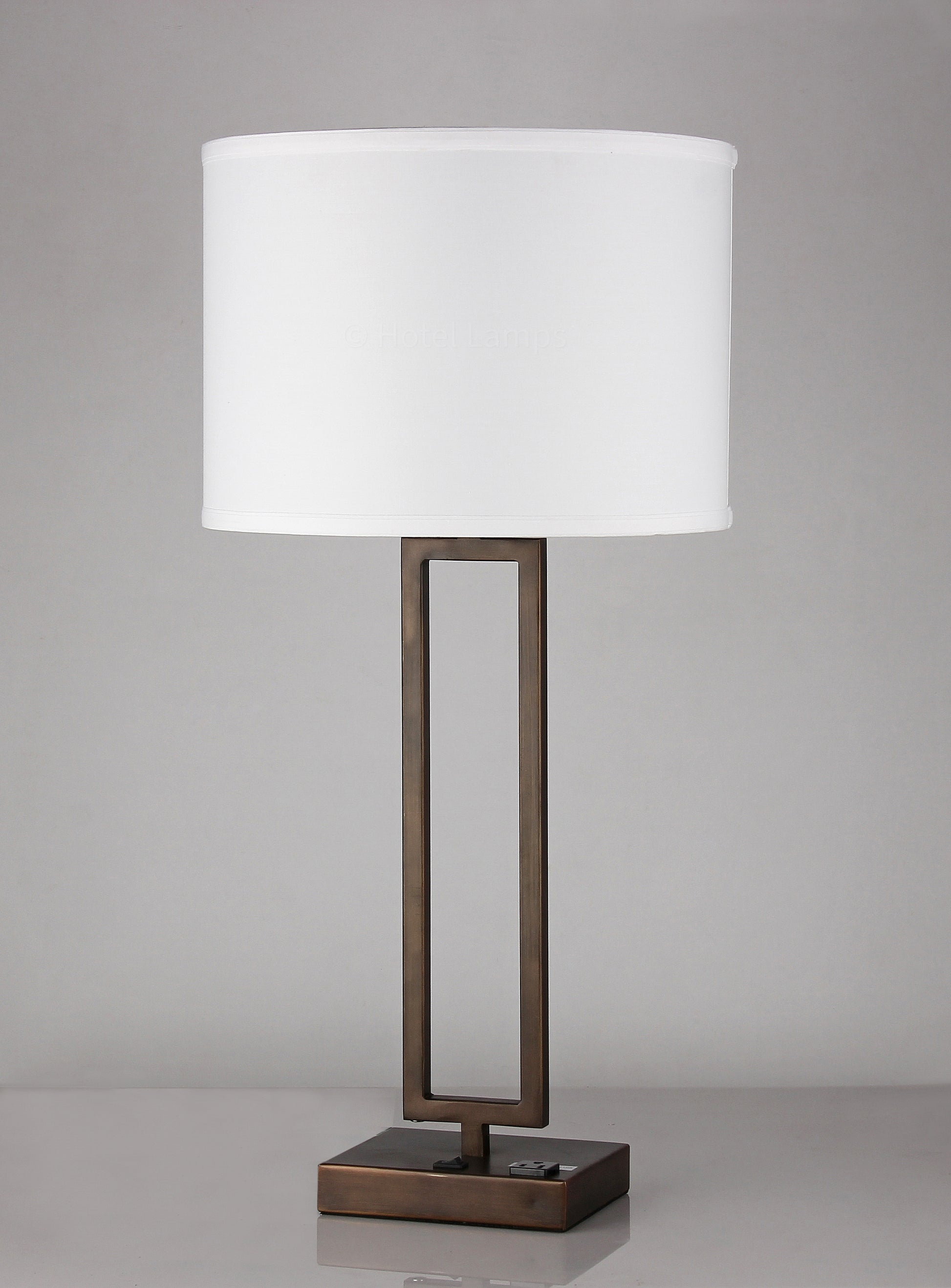 Bronze 28" End Table Lamp – Pure White Linen Straight Round Shade