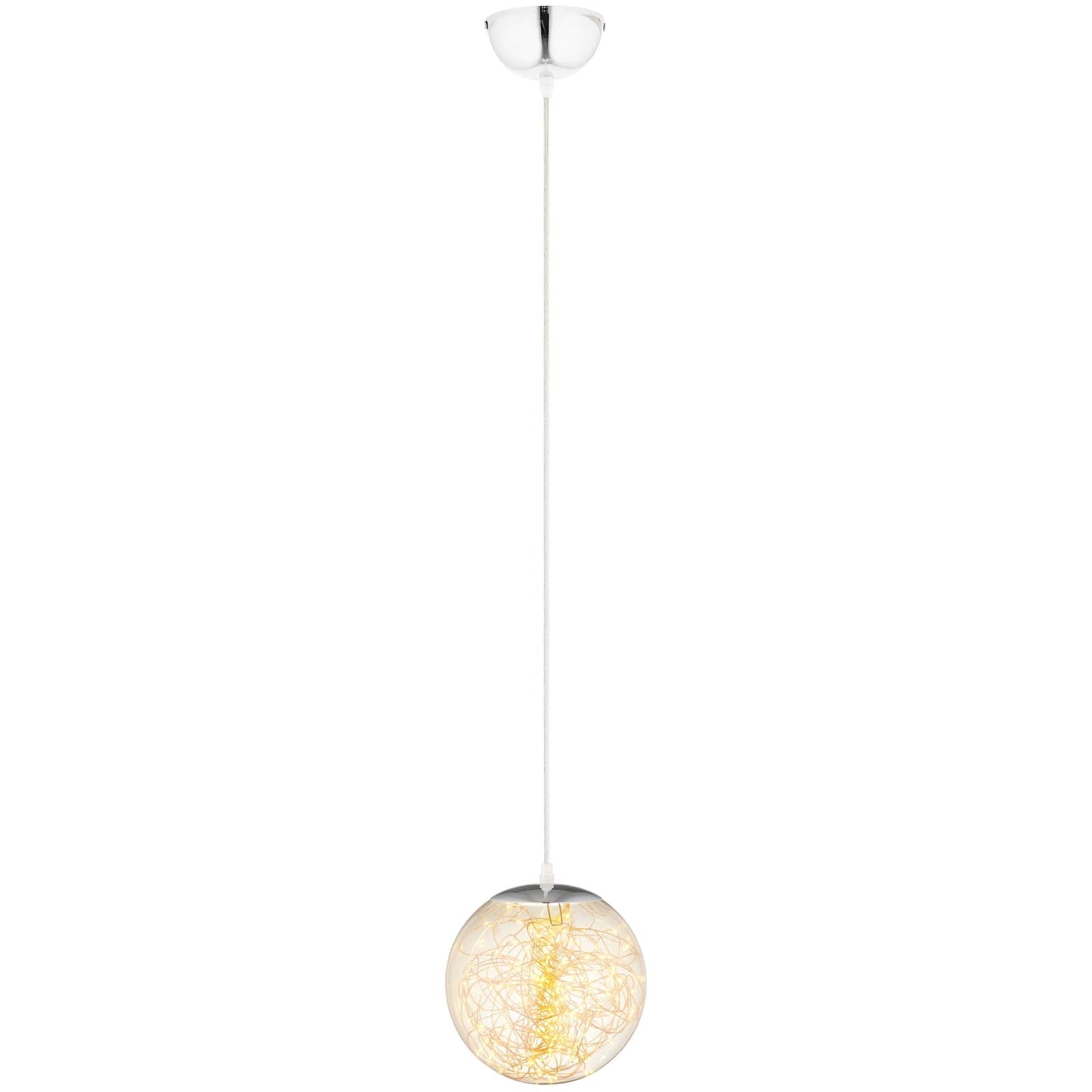 Designed with a sleek chrome-plated metal rod and flush ceiling mount, the Fairy Pendant incorporates a transparent wire with 6W LED lights inside the glass orb, producing a radiant and enchanting effect. Ideal for living rooms, dining areas, entryways, kitchens, or bedrooms, this pendant effortlessly combines contemporary design with playful charm.